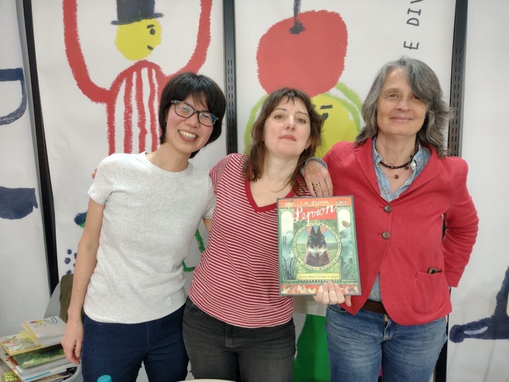 次作『レプロンさんのスープ』のイラストレーター、マリアキアラ・ディ・ジョルジョさん(写真中央)と